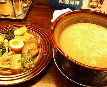 新宿、光麺。熟成光麺全部のせを食す。ギリ○でした。 とんこつ+魚介+他らしいですが、魚介+その他はあまり感じることが出来ない、濃いめあっさりのとんこつラーメンに感じました。 あっさりだから魚介?魚の風味感じませんでしたが。 そこがプロの技なのかな?ラーメン鉢には麺とスープだけが入っていて、具材の乗った同じ陶器の蓋を乗せて出てきました。 写真の具材が乗った蓋?が具材のお皿と蓋を兼ねてました。 有名店なんですよね?私はあんまり知りませんが、松茸ラーメンとかもあるみたいなので、歌舞伎町に行かれたときはいかがでしょうか? 私もたまには行って見ようと思いますが、昨日行った航海屋に行きそうな気が…します。もしくはカマド? 私見ですのでクレームは受け付けません。