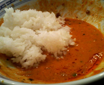 スープだけ飲むより麺をつけつけして食べた方がうまいっす。でももうちょっとうまみが欲しいです。ちょっと単調めな辛さになっているように感じました。