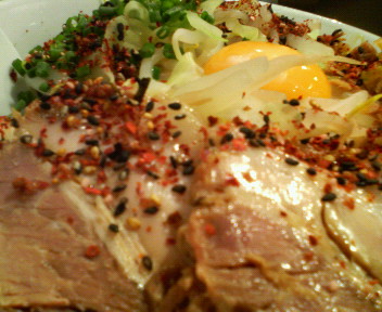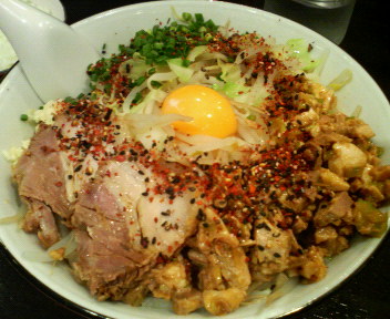 カルボ郎は限定時に食べに来れてないので今回が初。前回のイタ郎から何と無く想像はしちゃうんだけど。全部和えるとこんな感じになりました。でも和え麺はたいていこんな感じですよね・・・。