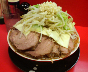 チャーシューはちょっと肉質感タップリで・・・ちょっとパサってます。でも某府中店のようにチャーシューとチーズのサンドした感じが、予想以上に合うんですよ。