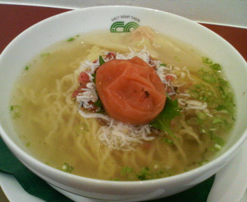 梅干が入ったラーメンは今まで気に入ったものはないんですが、今回のこのラーメン、梅干しを潰さずに食べたので軽く梅が香る程度の塩スープであっさりしています。酸味もきつくはありません。