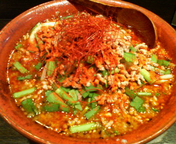 結構な赤い色でやってきました・・・というか真っ赤。辛さは気にしませんけど(常識の範囲内と思うので)、赤いスープがハネる方をよっぽど気にしちゃいます。