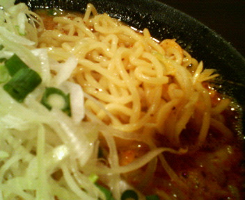 まずはレンゲでスープを飲むと、スープ自体はあっさりめな動物系に表面に浮いたラー油やら豆板醤系の辛いタレやアーモンドの風味が味わえるあっさりめの坦担麺です。