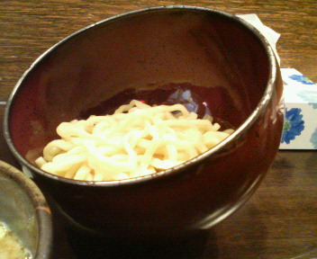 器の色が小豆色っぽく、麺の白っぽさとで映えて見えますね。