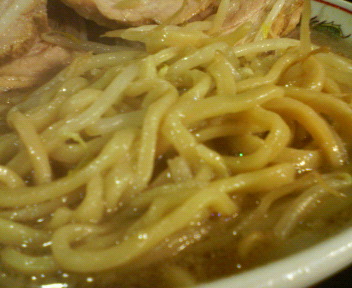 しかし直径7〜8cm×厚さ1cm弱くらいの豚が何枚入ってるんだ?ってくらい入っていますよ。私は好きなものは後に食べるイヤな性格なので、豚は残したまま麺へ。