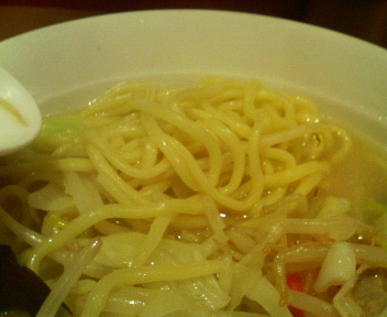 でもスープが薄まるのはイヤだったので、息を吹きかけ冷ましながら野菜を食べると、良いシャキシャキ加減。スープを掛けて食べるとスープも味わえてうま。
