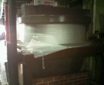たまたま通りかかったが暗かったので横から撮影。比較対照がなく分かりにくいですが、真ん中に写っているのが畳んだビニール傘。直径は2メートル弱あるんじゃないでしょうか?