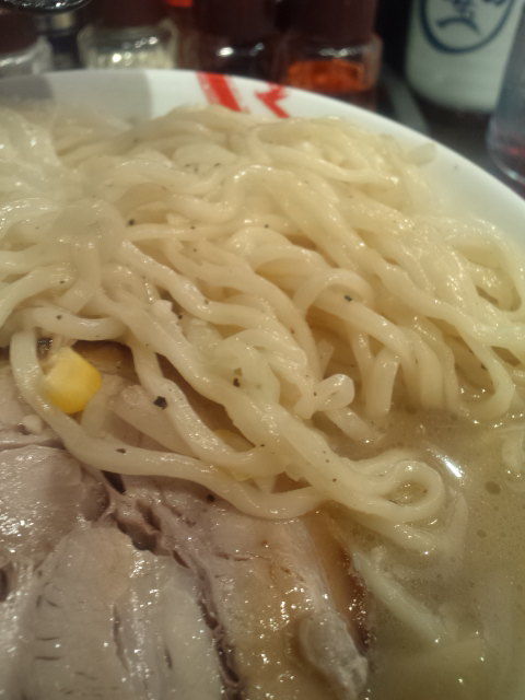 やや縮れでやや平打ち、普通〜中太の麺はかなり柔らかめでもっちりながらちともさっとした感じなのですが、後味が今一つにも思います。