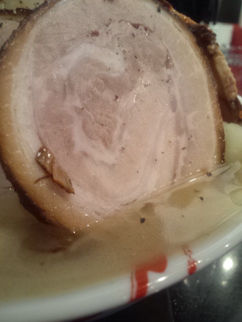 麺の中盤でもまだスープが熱いのは私にはちとツライです・・・。そして追加オーダーをしておきながらチャーシューも脂身が多く、後半に残しておいたせいもありツライです・・・。うまいんだけど。