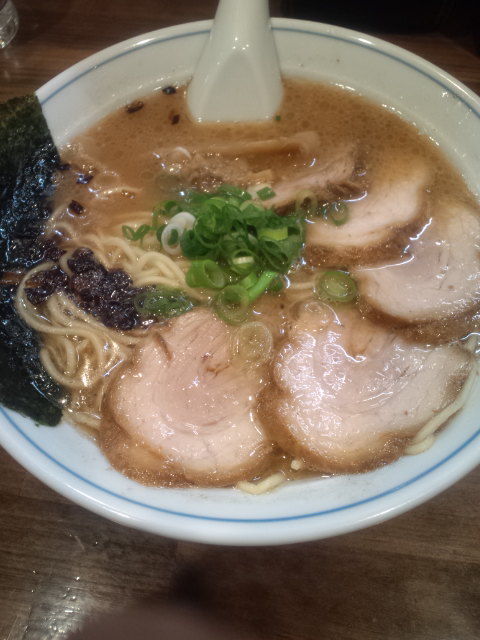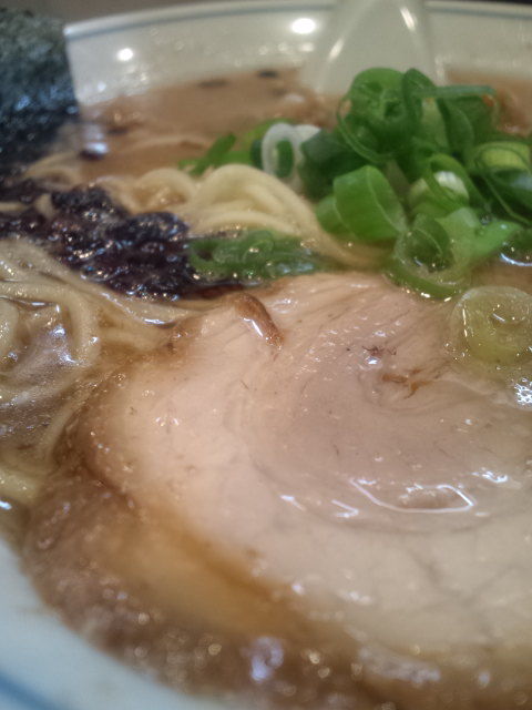茶濁したスープにトッピングは正直、真新しいものは特になくオーソドックスな感じ。ただ揚げ長ネギは色的にも目立ちますね。レンゲでスープを飲んでみると、コクはありながらどちらかと言うとさっぱり系なWスープのイメージです。