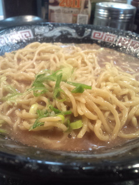 麺は普通〜ちと太めでちと縮れていて、堅めにしたせいか食感があるもの。麺もスープも存在感があるものでうまっ。見た目にはかなりの脂ですが、いやいややはりかなり重いスープになっています。骨の髄まで、どころか一緒に鍋に入っている肉まで溶けているかのようなスープです。