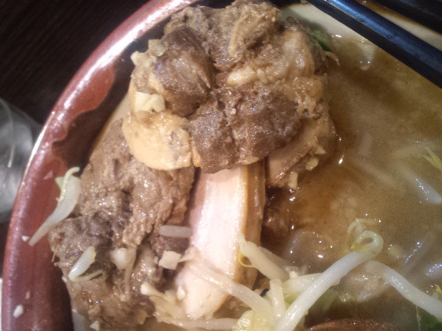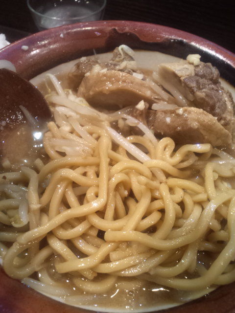 麺はデフォと一緒と思われる中太でちと平打ち、ちと縮れた感じ。いつもより堅めに感じて、濃厚味噌スープとのバランスが良く思いましたがデフォと一緒の堅さですかね。