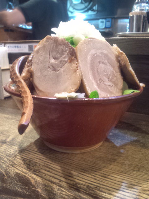 しかし頂上に刻み系を盛られると・・・と思っていたのに、結局カウンターに刻み玉ねぎとニンニクをこぼす私。申し訳ない、と思いながら食べていきます。