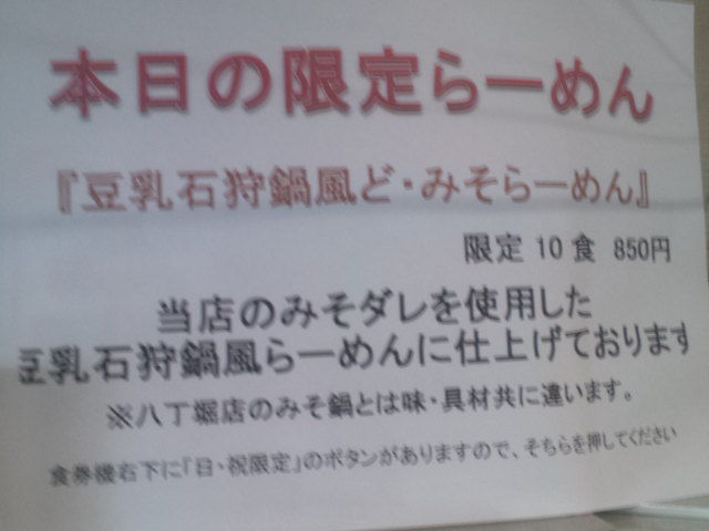 いつもは限定の写真が記事に載っているのですが、今回の【豆乳石狩鍋風ど・みそらーめん】はブログ記事に写真もなく、どんなものかは不明だったのですが、逆にたまにはどんなラーメンか分からないのもイイってものかな、なんて思っているとラーメン到着♪