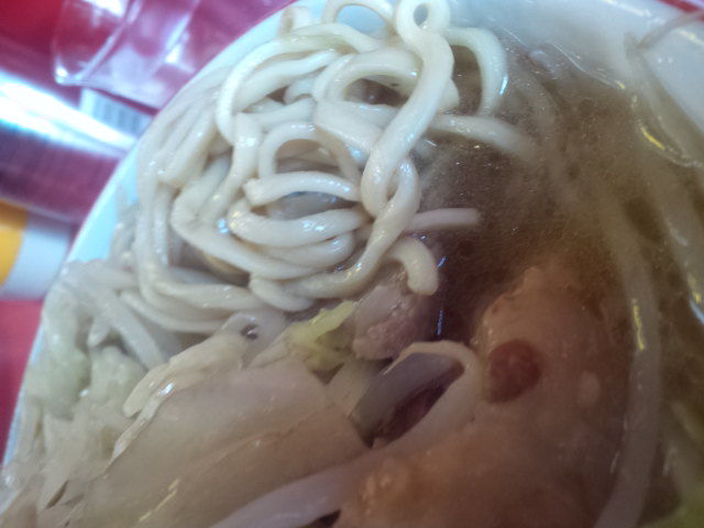 野菜を脂と混ぜ混ぜしながら食べるとすぐに豚さんが出てきましたが、豚さんはちと避けて麺へ。