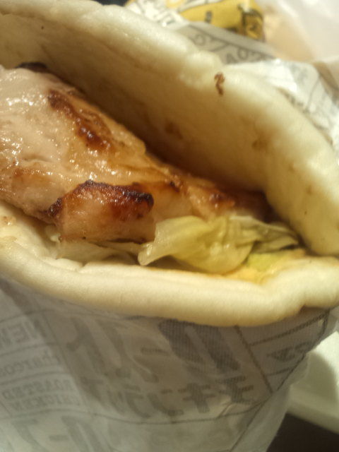 レタスやニンジン、マヨ系ソースが入りますが、ナン?バンズ?のもっさり感が気になる・・・。鶏肉がもちっとジューシーだったら違うのかもですが、最後までもさもさで完食。