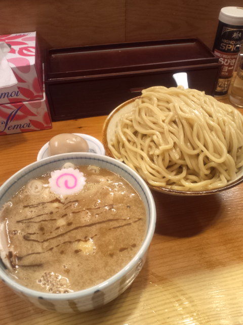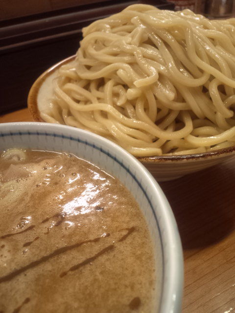 昼前の所用をさっさと終わらせたのはいいが銀座です。いつもの通り?ガッツリ食べたい感じを埋めようと来たのがコチラ。寡黙な厨房内にちと堅めな空気を感じていると、つけめん到着♪