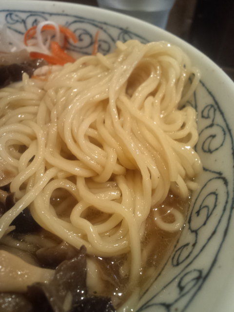 麺と一緒にきのこを絡めて頂くと、うま。私のきのこ好きもあってか和風Wスープのきのこは合いますねぇ、しっかりコクもあるんできのこに負けていません。