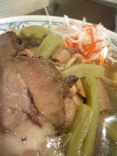 チャーシューで隠れていますが、きのこがたくさん乗せられています。きのこ炒め定食分くらいは乗っていますよ(?)この単体で白いご飯が欲しくなってしまいます。