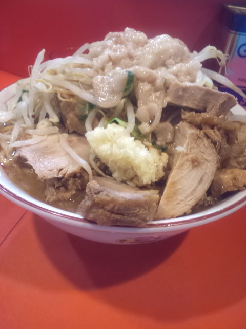 仙川二郎にはかなり久し振りなので、これが結構盛ってもらったのかどうかの判断が付きませんが、一般的にはかなり盛られた感じと思います。野菜はちと柔らかめ。ちと脂が多いので避けつつ混ぜ混ぜして食べるとうま。