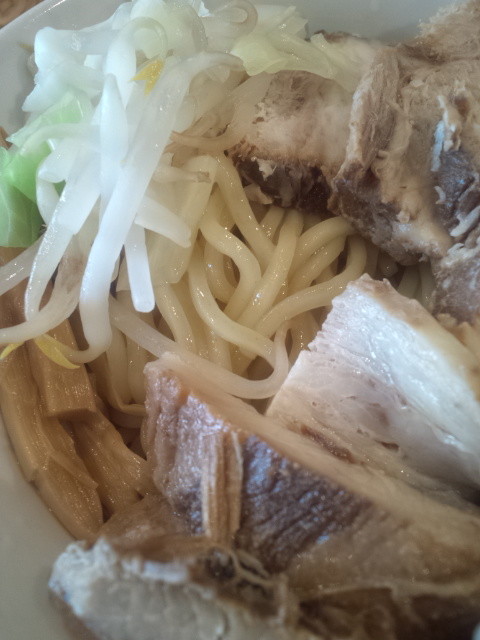 チャーシューはスライスされたものと短冊な2種類。共にバラですかね?短冊が脂身だけのものが2つあってちと残念でしたが、スープとは逆なのか濃い味付けではなく、豚肉を味わうようなもので、豪華にチャーシューを箸休めにしてしまいました。