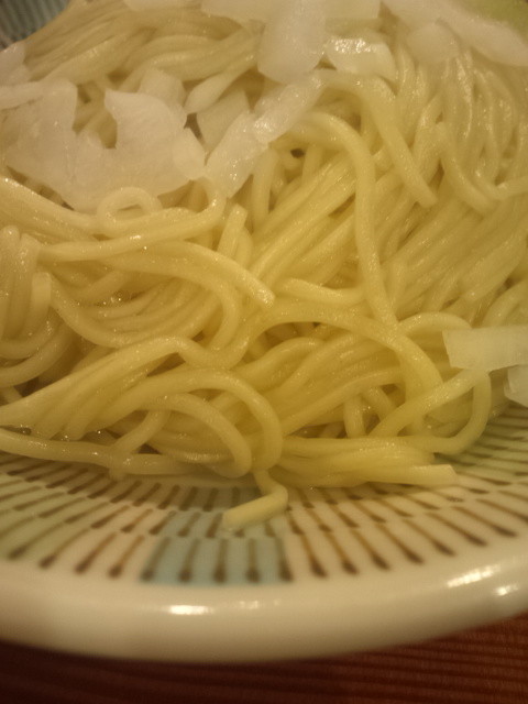 替え玉は小皿で、刻み玉ねぎとタレを掛けられた状態で登場。器に移してスープと良く併せて頂きます。タレが入った分、ちと締まった感じになって、正直替え玉をしたとき味わいの方が好み、だなんて言い難いですね。替え玉をしているからこう感じるのかもしれませんが。