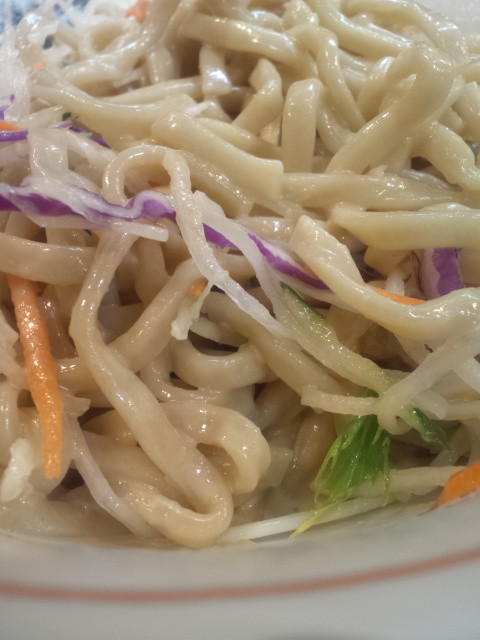 チャーシュー的な存在は鶏肉ですが、しっかり冷やされて、鶏肉に付いたタレがプルンプルンしています。コラーゲン?冷やされているからという事もあってか、しっかりとした食感、というかちと堅め。