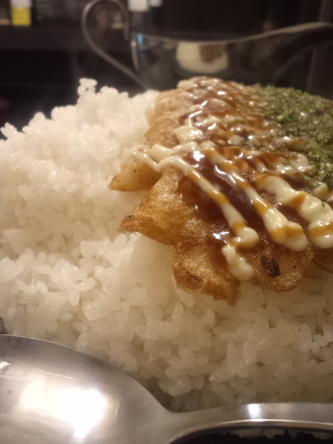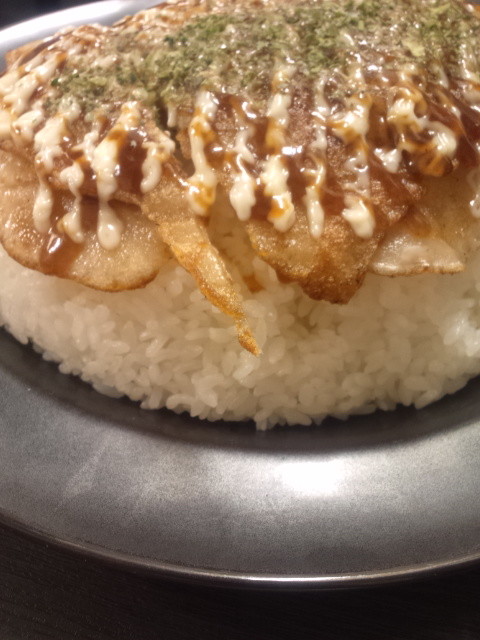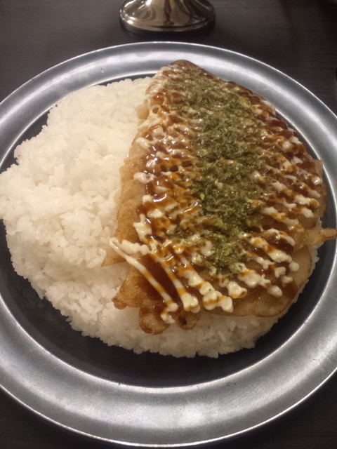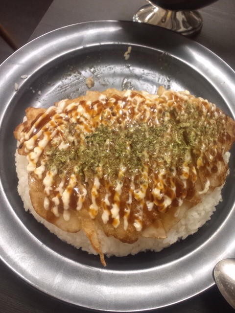 豚焼きは、豚肉を水で溶いた小麦粉系包んで焼いたものでした。それにソースとマヨと青海苔を乗せた感じです。衣の部分が微妙なもっちりさで、関西のイカ焼きとも違うし、とんぺい焼きとも違うし、今まで食べたことがなかったものかも?