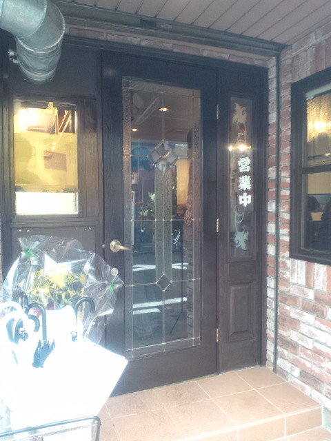 花が飾ってあったのですぐに分かりませんでしたが、ドアがとても喫茶店ぽい感じで、看板と違和感ありまくりですね。逆に面白いから良いかも。