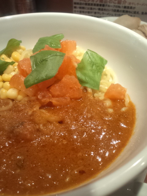 ソースだけで頂いてみると、ショッパーめ、で海老でトマト。しっかり両方味わえる感じで、イメージ通りでラーメンというより、パスタな感じです。