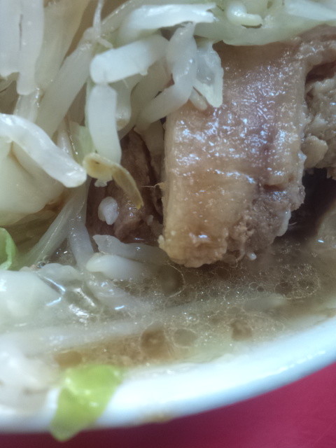 カウンターに置かれた器を降ろそうとすると、器がヌルヌル・・・しかし万が一にもこぼせない、否!こぼしたくない!と、就業中にも滅多に使わない、今日イチの集中力をココで発揮させて、離着陸を無事に成功させます。まずは上からと野菜を頂いてみると、イメージよりはクタ加減が低め、少しだけシャキありな感じです。