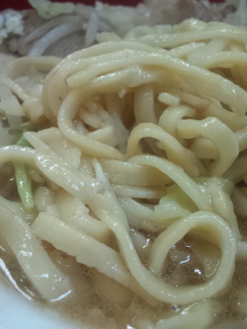 殆ど野菜を食べて麺を引っ張り出してみると、スープの色がいつもよりも濁っています。