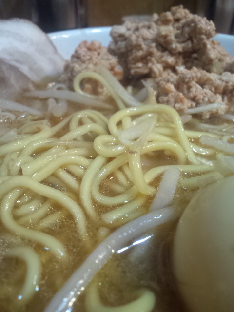 もやしの3口目で熱いスープに遭遇。どうやらチャーシューのそばの温いスープを飲んでいたようです。麺はいつもの普通太さのほぼストレート。気持ち柔かめなもっちりに感じて、何だか味噌と合うように思えます。