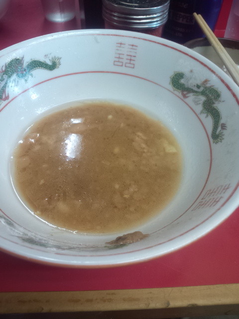 あ、そういえばレンゲを使うのを忘れてた、と思ったのは、固形物を食べ終わって、スープ内の固形物をサルベージしているときでした。脂の塊はパスさせて頂き、残させてもらいました。
