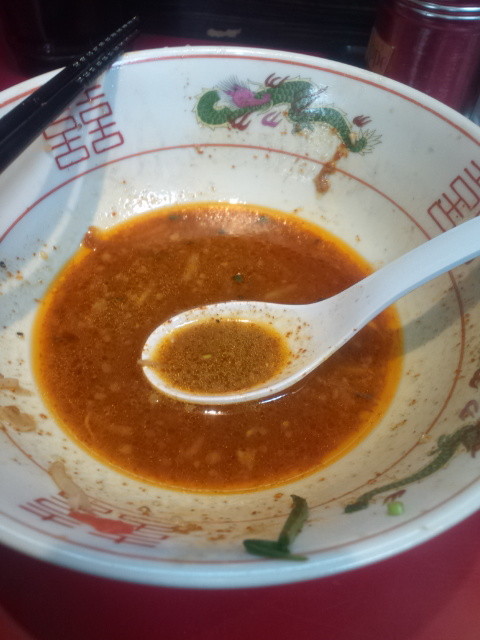 底にはスープ、かなり少ないですが。レンゲでスープのみを頂いてみると、イメージより乳化加減は低めに感じます。といってもかなり久し振りの訪問なんで、かなり曖昧か・・・あ、あくまでも私のイメージ、すいません。