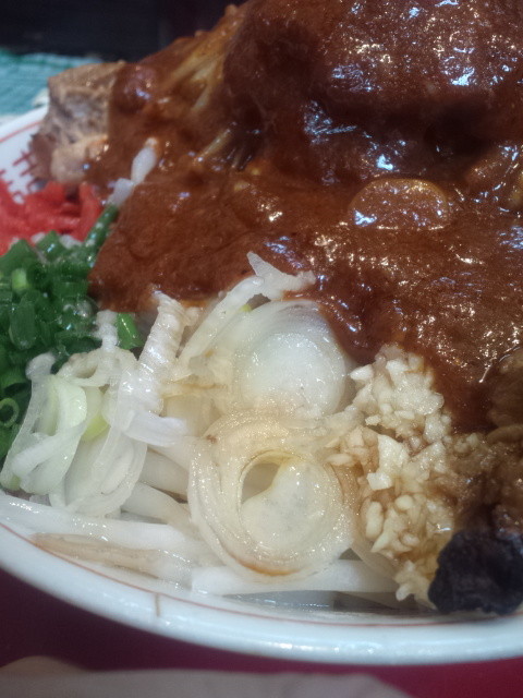 麺の後半はカレーが殆どなくなってしまったので、スープと麺を絡めて食べ食べ。スープがはねないように食べるのが、結構大変だったりしました。