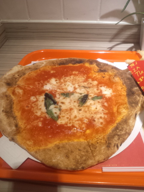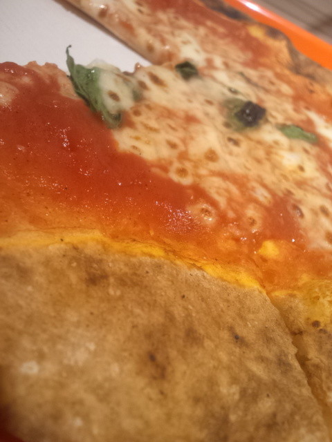 取ってみると生地は予想よりも厚め。イタリアンピザのイメージって、パリッとした薄い生地のイメージだったので、コレはちと予想外(イタリア行ったことないですが)。