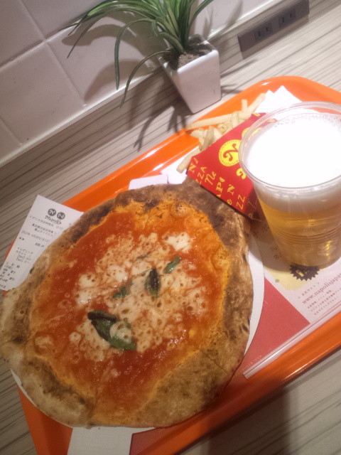 トマトソースの酸味が程よくて、チーズはちと少なめだけど、うまー。これは350円分は味わえているかも。昼からですがwith生ビールで、楽しませて頂きました。