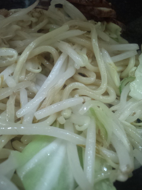 麺は茹でられた後、茹でた野菜と一緒に炒められたようで、軽く香ばしい感じ。大きな焦げは見当たらなかったので、本当に軽く、麺と野菜を併せるように炒めた感じでしょうか。