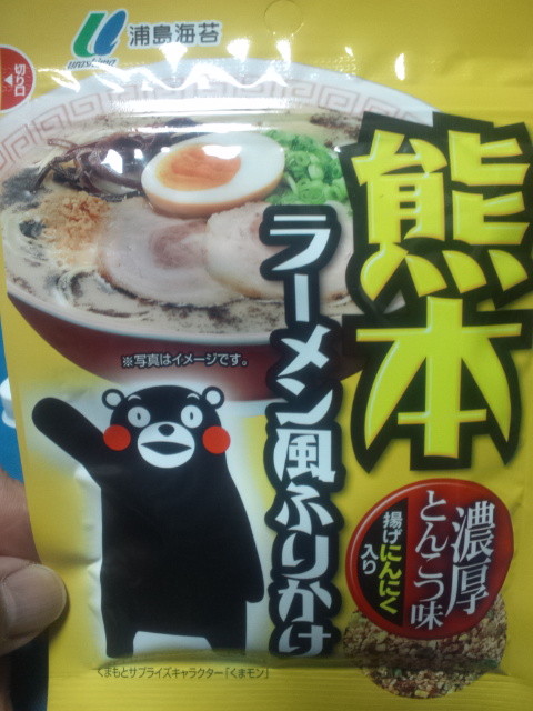 くまもんでラーメンふりかけ?熊本ラーメンのふりかけ?と見てみたら、味は3種類あるようで、熊本濃厚豚骨、豚骨とんこつ、味噌とんこつ、が売っていました。