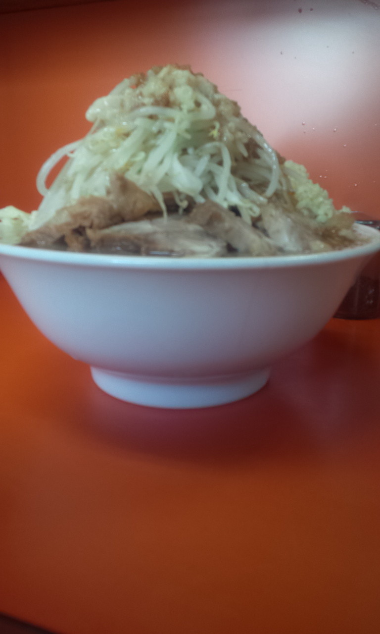 店主様の恐ろしい汗の量に驚いたところで、店主様「小豚Wぅ、ニンニクは入れますか?」