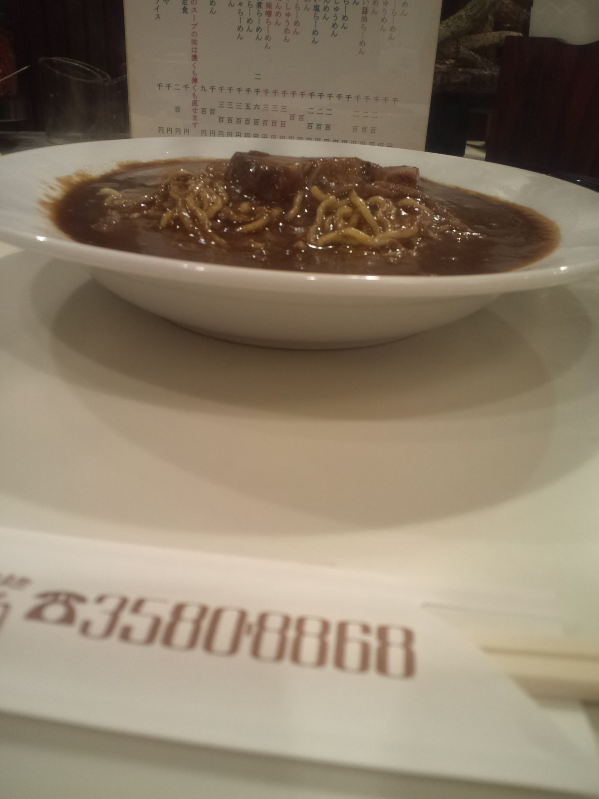 目の前のメニューを見ながら、予習通り、やはり1100円なのか・・・と思っていると、ラーメン到着♪