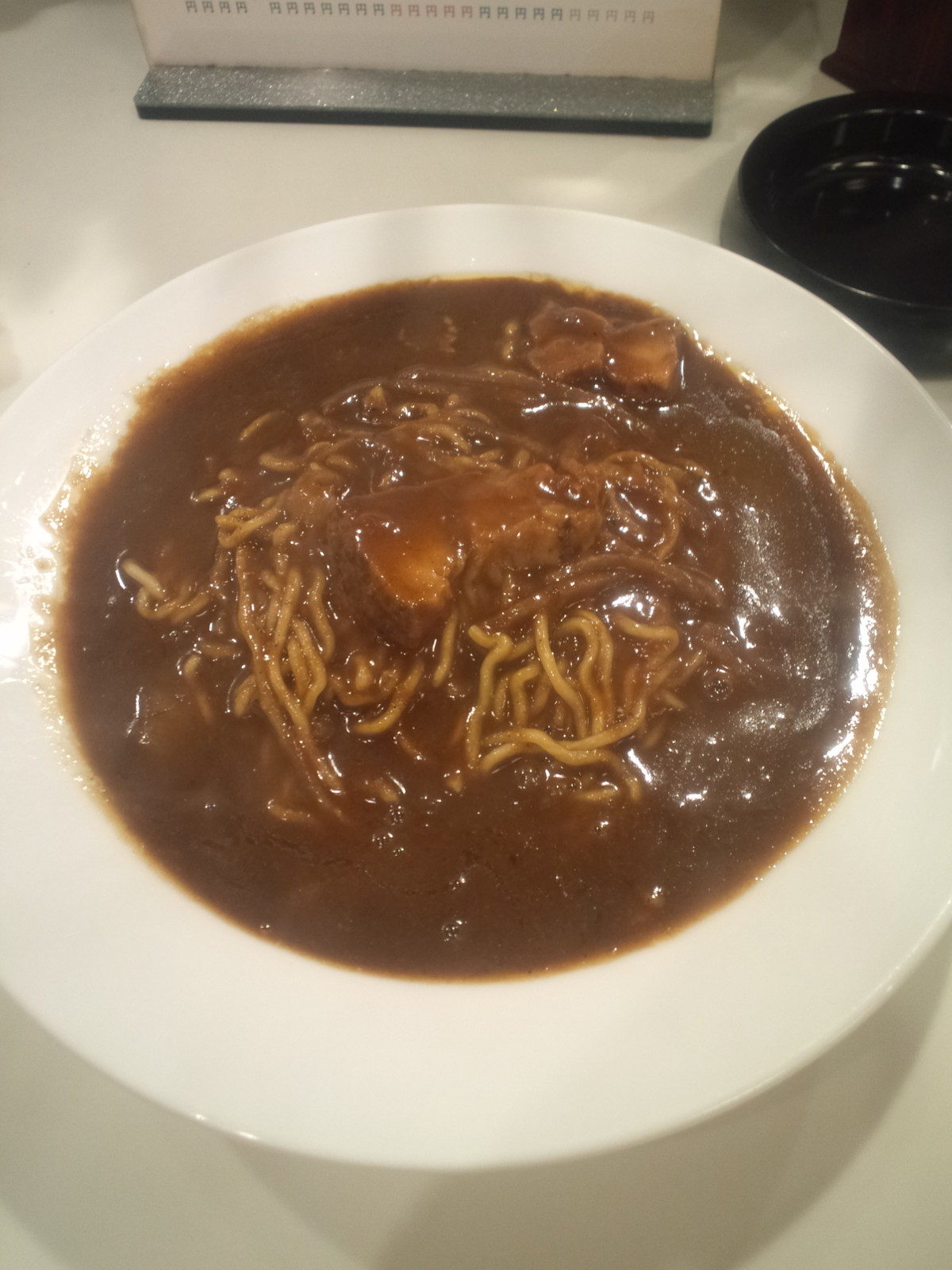 いわゆるカレーライスのカレーでないからか、具材は溶けてしまっているからか、すぐに分かる具材は頂上のバラ肉的なものが1.5つ。一応、チャーシューになるんですかね。