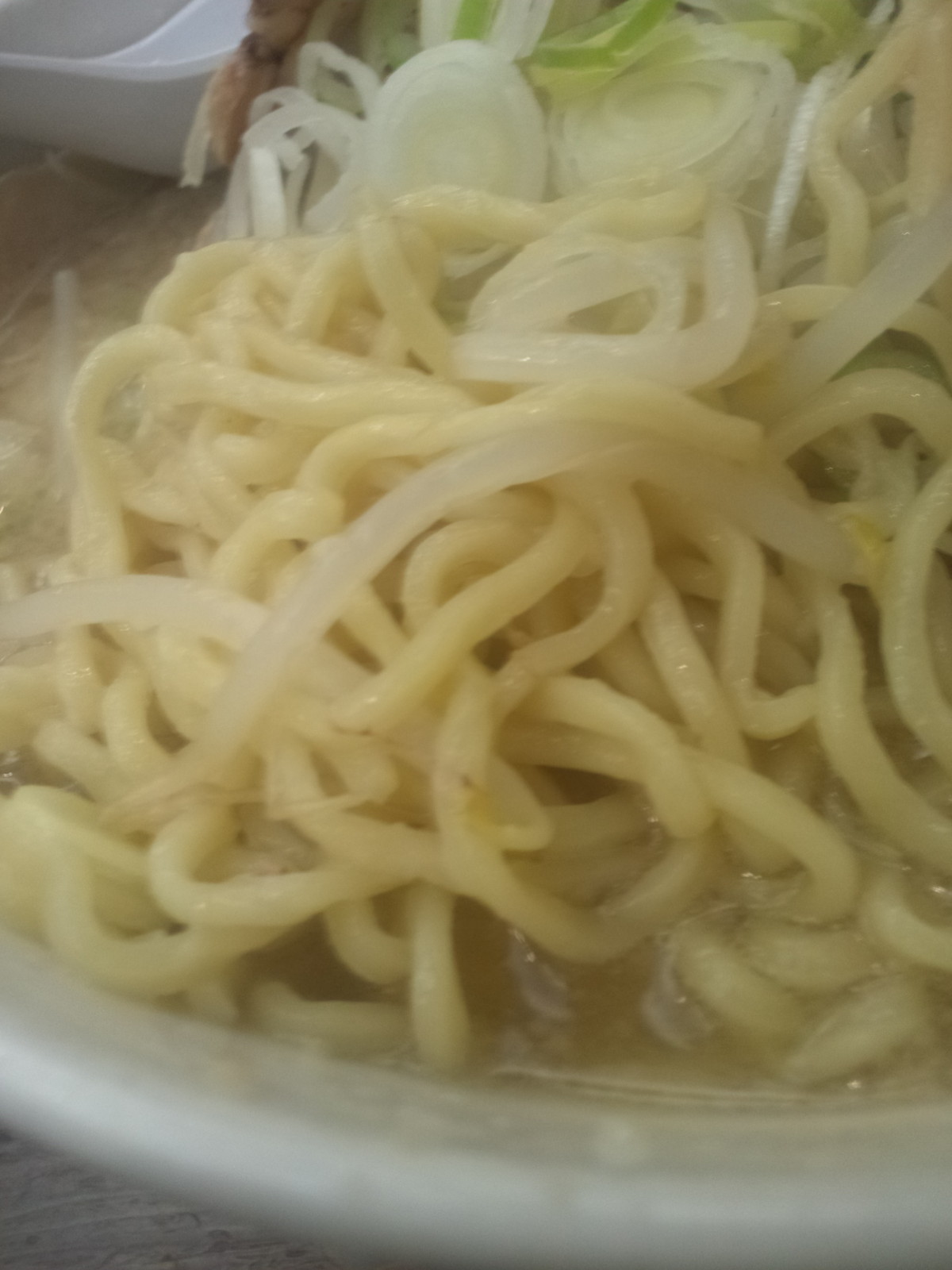 麺は中太なストレート。モチプリな感じで、そんなにスープの持ち上げが良さそうには思えない麺ですが、脂はしっかりと絡んでくれてかなり大味。