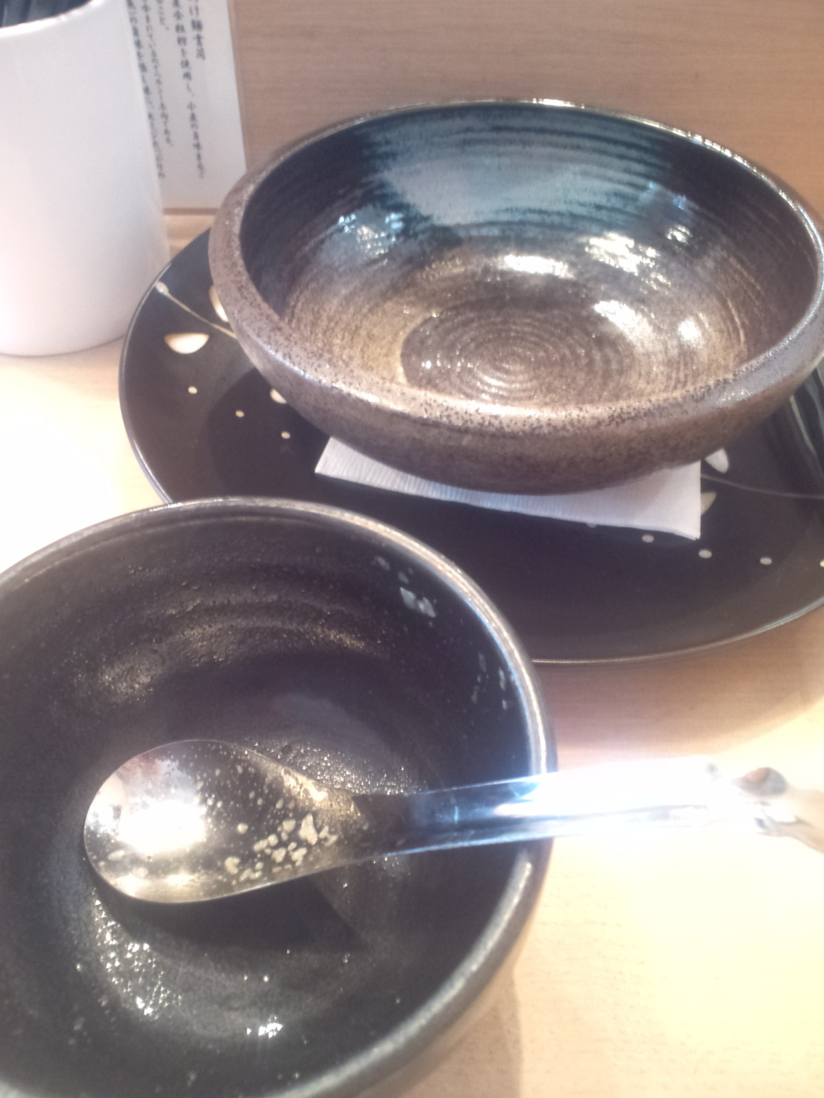 後に麺完食。ちょうどそのタイミングで、「スープ割りはいかがですか?」と声をかけて頂いたので、お願いしました。