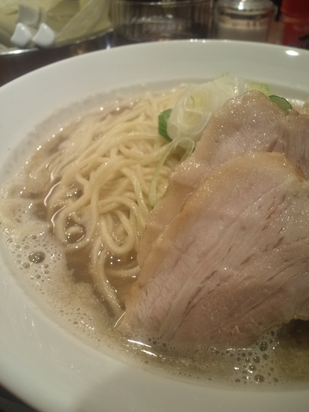 お近くの女性客様、ラーメンを目の前に来てもまだメール・・・うーむ、信じられない。ってまぁ撮影している私も同じかと思っていると、ラーメン到着♪
