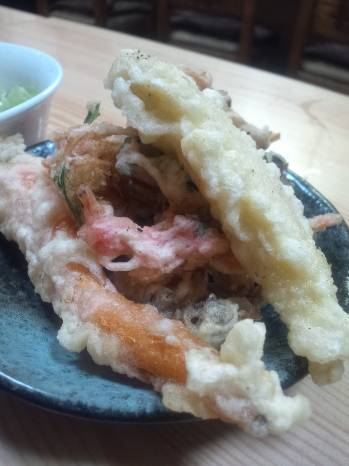 定食だからね、と写真を撮ったら、まだ出るからねーと揚げ物(天ぷら)が追加到着。