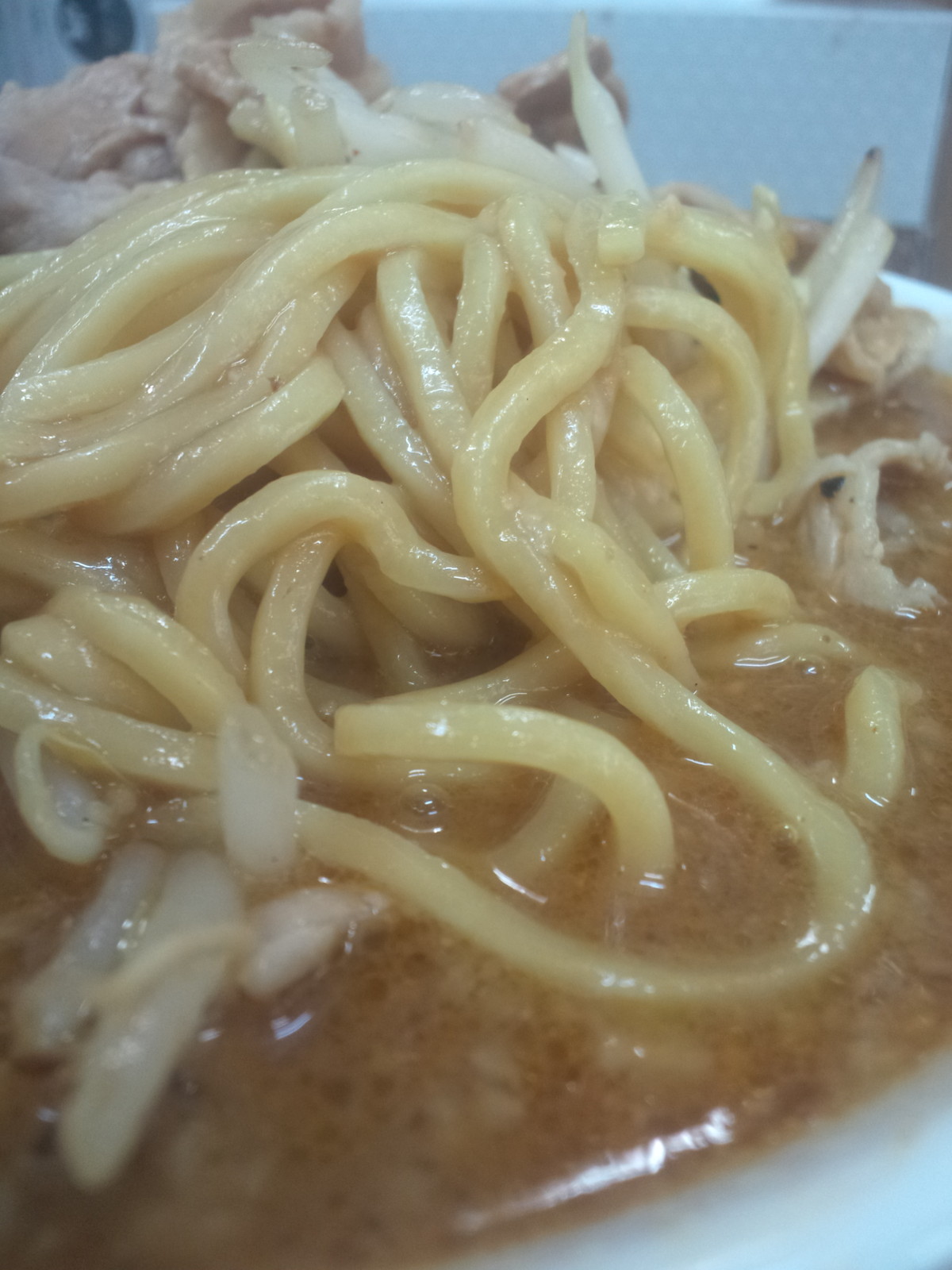 麺は中太〜太麺のストレート、断面が四角い感じ。固めなぷりもち、コシがある感じ。スープは若干トロミがあって絡みも良さげですけど、何か好みじゃないというか大味気味というか何というか違和感。