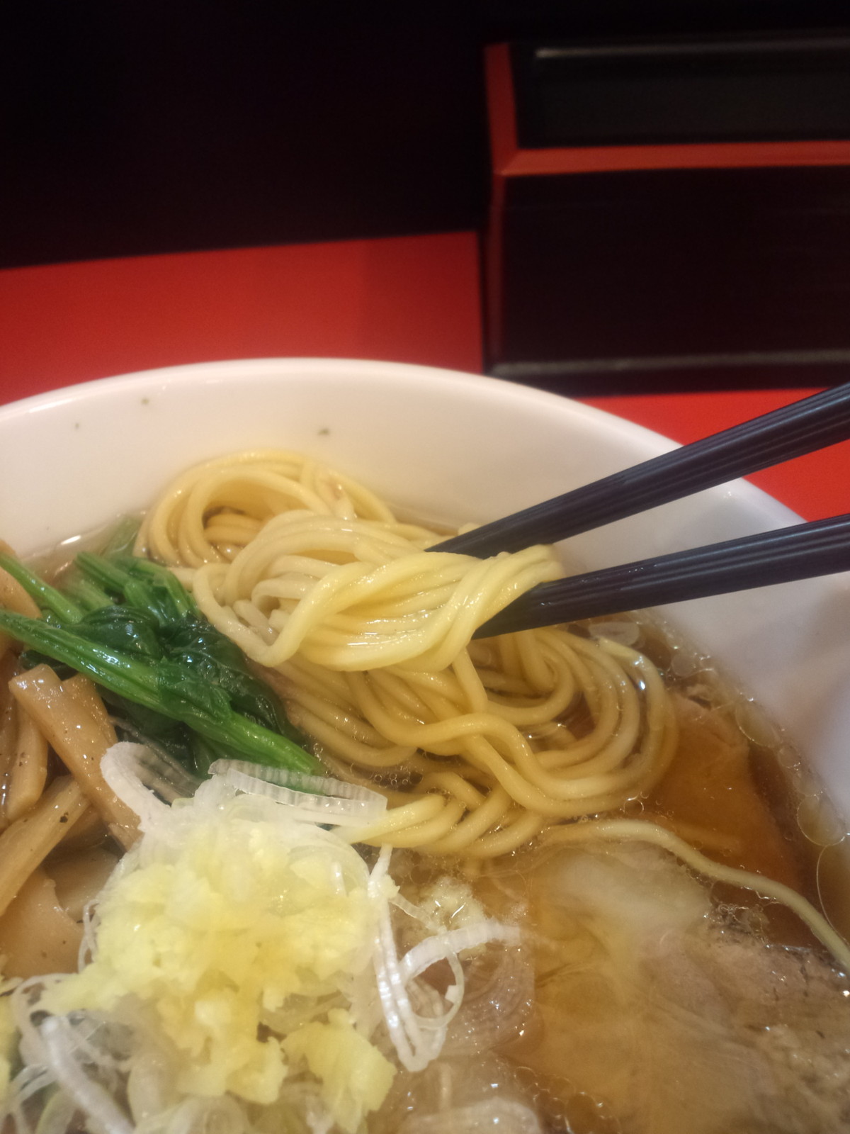 節系もあって、新東京ラーメン系な(勝手な私の) イメージ?麺は普通から中太なほぼストレート、気持ち柔らかめにも感じる、ちともっちりな感じで、麺の存在感は気持ち弱めかも。