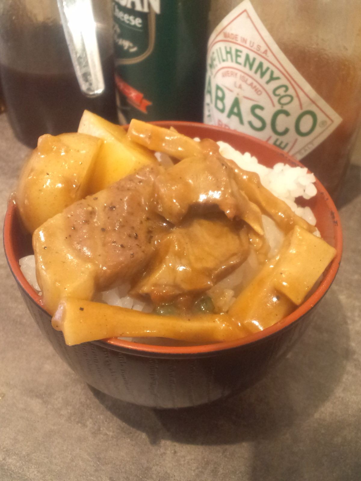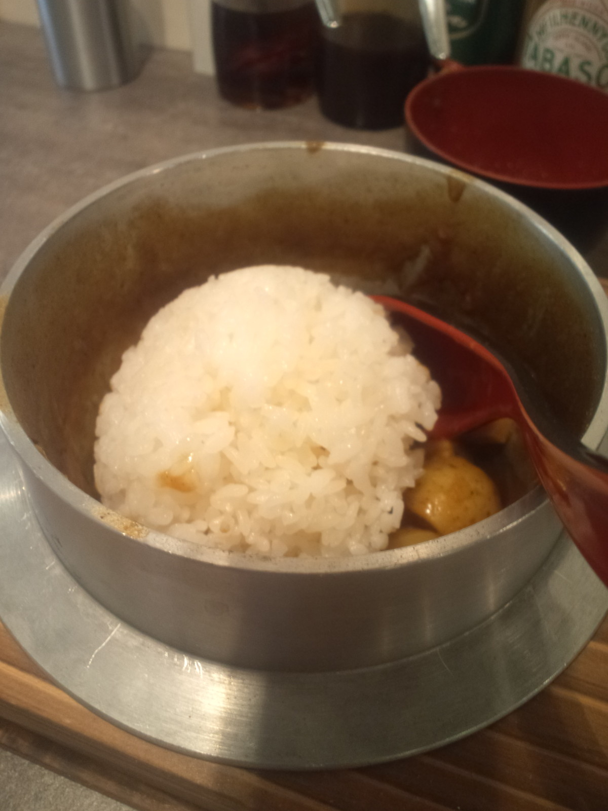 ミニかレー丼?的なものからの、カレースープ雑炊へ以降。ちとカレールーが足りなげでしたが、濃いめの味わいなので、物足りなさ全開!ではありませんでした。まぁ足りなかったですけど。